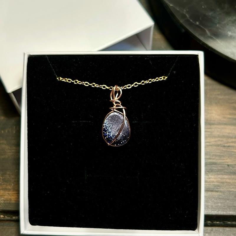 Elegant Dainty Copper Wrapped Blue Goldstone Teardrop Pendant